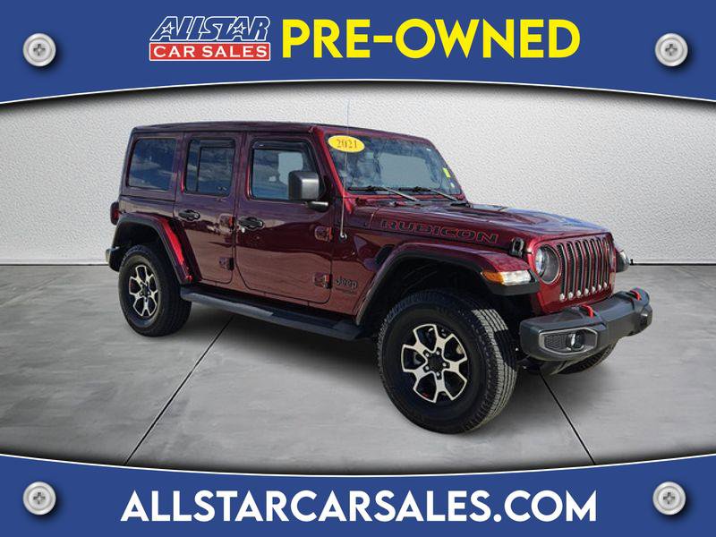 Protect this mid-size suv from unwanted accidents with a cutting edge backup camera system. This unit keeps you comfortable with Auto Climate. The installed navigation system will keep you on the right path. It has a clean AutoCheck report, ensuring its impeccable vehicle history. The leather seats in this Jeep Wrangler are a must for buyers looking for comfort, durability, and style. This mid-size suv offers Android Auto for seamless smartphone integration. An off-road package is equipped on this mid-size suv. with XM/Sirus Satellite Radio you are no longer restricted by poor quality local radio stations while driving this unit. Anywhere on the planet, you will have hundreds of digital stations to choose from. Bluetooth technology is built into this unit, keeping your hands on the steering wheel and your focus on the road. This unit offers Apple CarPlay for seamless connectivity. It's AutoCheck: 1 owner, assurance of single-owner history for peace of mind.When you encounter slick or muddy roads, you can engage the four wheel drive on this model and drive with confidence. This vehicle offers Apple CarPlay for seamless connectivity. This Jeep Wrangler offers Android Auto for seamless smartphone integration. This 2021 Jeep Wrangler keeps you comfortable with Auto Climate. Protect this model from unwanted accidents with a cutting edge backup camera system. Electronic Stability Control is one of many advanced safety features on this 2021 Jeep Wrangler . The fog lights cut through the weather so you can see what's ahead. It features a hands-free Bluetooth phone system. Quickly unlock this vehicle with keyless entry. The leather seats in this unit are a must for buyers looking for comfort, durability, and style. An off-road package is equipped on this unit. You'll never again be lost in a crowded city or a country region with the navigation system on this mid-size suv.