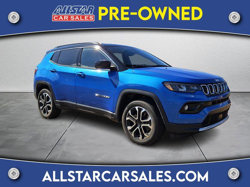 Discover exceptional value with this 2023 Jeep Compass Limited, now available in Wauchula, FL. With only 18,164 low miles, this 4WD compact SUV pairs a responsive 4 cylinder, 2.0L gasoline engine with refined Limited-level features for comfortable, confident driving in any season. Priced to sell this is the best price you'll find for a Jeep Compass in this condition. Premium leather seats and an upscale interior surround create a comfortable cabin for daily commutes and weekend adventures. Stay connected with Android Auto integration for seamless smartphone access to navigation, music, and calls. Advanced safety tech includes Forward Collision Warning and Adaptive Cruise Control for added peace of mind on busy highways and Florida backroads. The vehicle also carries an AutoCheck Clean Report, confirming its well-maintained history. The 4WD system delivers capability when weather or terrain demand extra traction, while the efficient 2.0L engine balances performance and fuel economy. Low mileage enhances resale value and reduces near-term maintenance concerns. Whether you're seeking a reliable family SUV or a stylish, feature-rich commuter, this Jeep Compass Limited checks every box. Located in Wauchula, FL, and offered at the best price, this 2023 Jeep Compass Limited won't last long. Contact us today to schedule a test drive and experience this low-mileage, feature-packed 4WD SUV for yourself.
